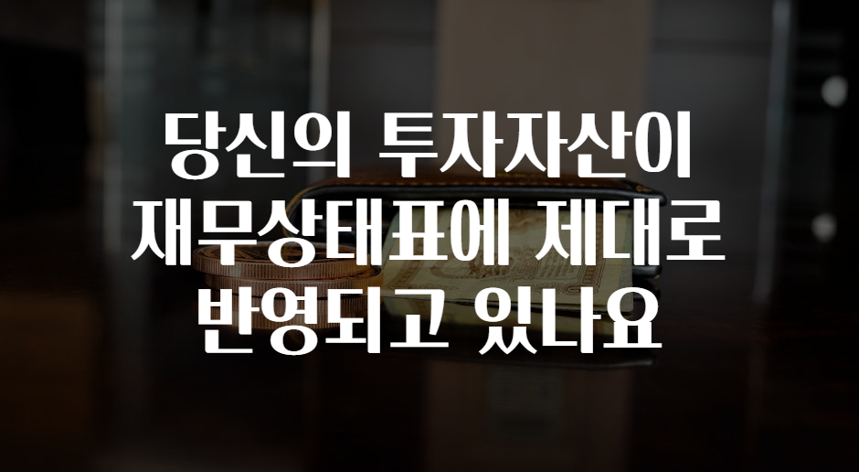 무νμμ°, νμμν, μ¬κ³ μμ° λ±κ³Ό λ¬λ¦¬ ν¬μμμ°μ κ·Έ κ°μΉ νκ°κ° μ§κ΄μ μ΄μ§λ§, μ¬μ ν νκ³κΈ°μ€μ λ°λ₯Έ μλ°ν ν΄μκ³Ό μ μ©μ΄ νμν©λλ€.