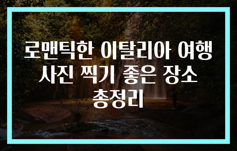 μ¬νμ λ¬λ―Έλ μλ§μ μκ°μ ν¬μ°©νλ κ²μΈλ°μ, νΉν λ‘맨ν±ν μ΄ν리μμ κ²½μΉ μμμ μ¬λνλ μ΄μ ν¨κ»νλ μκ°μ λμ± νΉλ³νμ£ . μ΄ν리μλ κ·Έλ¦Ό κ°μ νκ²½κ³Ό μμ¬μ μΈ κ±΄μΆλ¬Όλ‘ κ°λν λλΌμΈ λ§νΌ, μ¬ν μ€ μ¬μ§ μ°κΈ° μ’μ μ₯μκ° μ λ§ λ§λ΅λλ€. μ€λμ μ΄ν리μμμ λ‘맨ν±ν μκ°μ λ¨κΈΈ μ μλ μ¬μ§ μ°κΈ° μ’μ λͺ μλ€μ μκ°ν΄ λλ¦¬λ €κ³ ν΄μ. μ¬λ¬λΆμ μ΄ν리μ μ¬νμ΄ λμ± νΉλ³ν΄μ§ μ μμμΌλ©΄ μ’κ² μ΄μ!