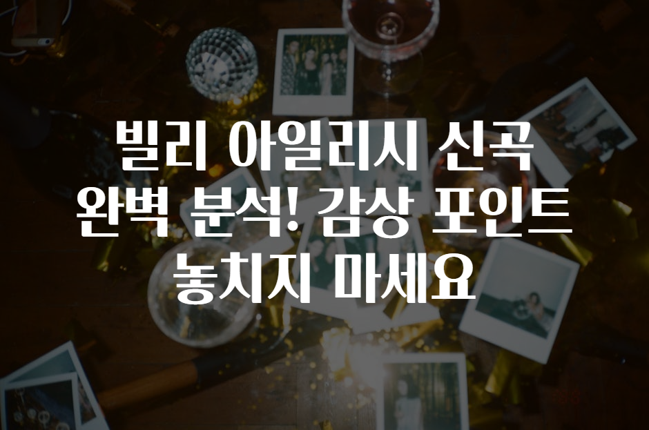 ํน์ ์ด๋ฒ์ ๋น๋ฆฌ ์์ผ๋ฆฌ์(Billie Eilish)๊ฐ ์๋กญ๊ฒ ๋ฐํํ ๊ณก์ด ๊ถ๊ธํ์๋์? ๐ง๐ ๊ทธ๋ ํน์ ์ ๋ ํนํ ์์ ์ธ๊ณ์ ๊ฐ์ฌ, ๊ฐ์ฑ ๋์น๋ ๋ฉ๋ก๋๋ฅผ ๋ชจ๋ ๋ถ์ํด์ ๋์น์ง ๋ง์์ผ ํ ๊ฐ์ ํฌ์ธํธ๋ฅผ ์๋ ค๋๋ฆด๊ฒ์! ๐คโจ